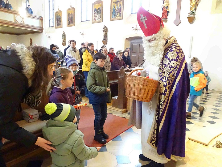 Nach alter Tradition kam der Nikolaus nach dem Gottesdienst persönlich, verteilte Geschenke und brachte dadurch Kinderaugen zum Leuchten. Am Nachmittag fand noch eine Andacht mit Gelöbniserneuerung, Gedenken der Verstorbenen und der Möglichkeit zur Neuaufnahme in die Nikolausbruderschaft statt. |
