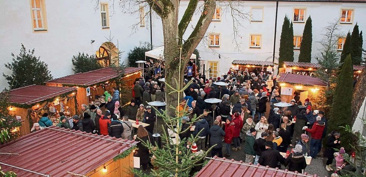 Er ist einer der kürzesten Christkindl-Märkte, mit der Dauer eines Nachmittags, aber er erfreut sich alljährlich großer Beachtung und regem Besuch. So kamen am Sonntag-Nachmittag wieder viele Gäste ins Schloss Eggmühl zum Bummeln oder auf einen Ratsch mit Freunden am Glühweinstand zum Alt-Eggmühler Christkindlmarkt. Das Wetter präsentierte sich in einem Novembergrau, was den Besucheransturm allerdings wenig schmälerte. Ab 13 Uhr lockte der Duft von Glühwein, gegrillten Würsten und frischen Waffeln. Ein breit gefächertes Angebot an Advent- und Weihnachts-Schmuck für drinnen und draußen, Wollsachen und vielleicht auch noch ein Weihnachts-Geschenk konnten die Besucher in den stilvoll geschmückten Verkaufsbuden und an Ständen in der Cafeteria finden. |