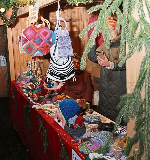 | Auch die „Strickrunde“ des Seniorenheims war mit einem Verkaufsstand vertreten. |