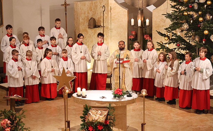 | Viele Ministranten aus der ganzen Pfarrei feierten die nächtliche Christmette mit. |