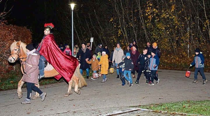 Ganz im Zeichen des heiligen Martin stand am Freitagabend, 14. November, das Dorfleben in Oberdeggenbach. Zum einen wurde mit einem Festgottesdienst das Kirchenpatrozinium gefeiert und passend dazu organisierten die Landfrauen für die Kinder einen Martinsumzug mit anschließender Feier. Gegen 17.45 Uhr versammelten sich Kinder mit ihren Laternen und Erwachsene an der Bushaltestelle in der Mitte des Dorfes, um einen Laternenzug zur St. Martinskirche zu formen. Angeführt wurde der Zug erstmals von einem Reiter, der den heiligen Martin darstellte, diesen Part übernahm Feuerwehrvorsitzender Kevin Göttfried. Abgesichert wurde das ganze Treiben von Kameradinnen und Kameraden der Feuerwehr. |