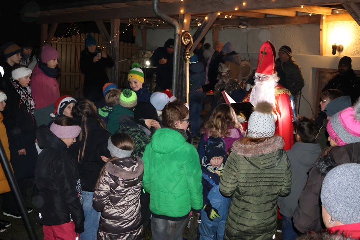 Für diese Feier hatte das Ministranten-Betreuerteam Knacker gegrillt und mit Semmeln und verschiedenen Beilagen zum Auswählen bereitgestellt. Außerdem gab es Kinderpunsch und heißen Aperol. Auch der Nikolaus (Jan Grau) kam mit seinem Knecht Ruprecht (Rafael Bauer) zu Besuch und verteilte Niklaus-Säckchen an die Ministranten. |