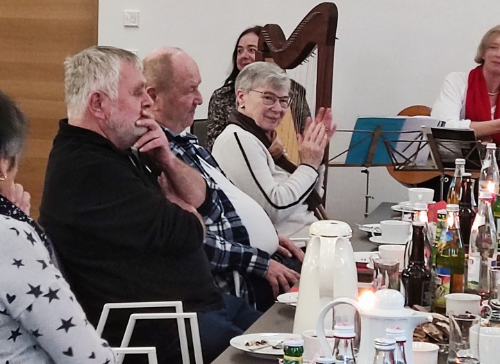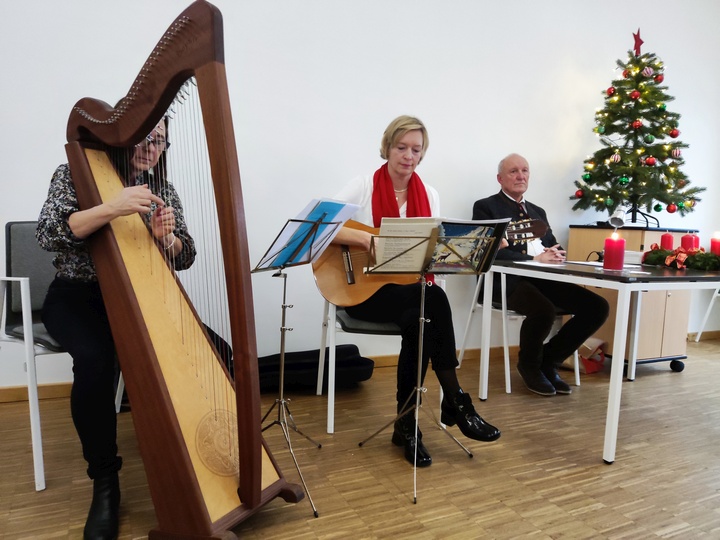 Die adventliche Gestaltung des Nachmittags übernahmen Rudi Schmid und das „Laber-Duo Conni und Lisa“. Schmid trug eine in der Länge für diesen Nachmittag passende Version der Heiligen Nacht von Ludwig Thoma vor. Zwischen den Kapiteln spielte das Laber-Duo, Conni Siegrün (Gitarre) und Elisabeth Hofmeister (Harfe), adventliche Instrumentalstücke. Leser und Instrumentalisten ernteten am Ende dafür gebührenden Applaus. |