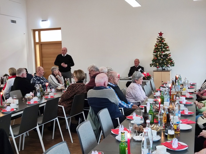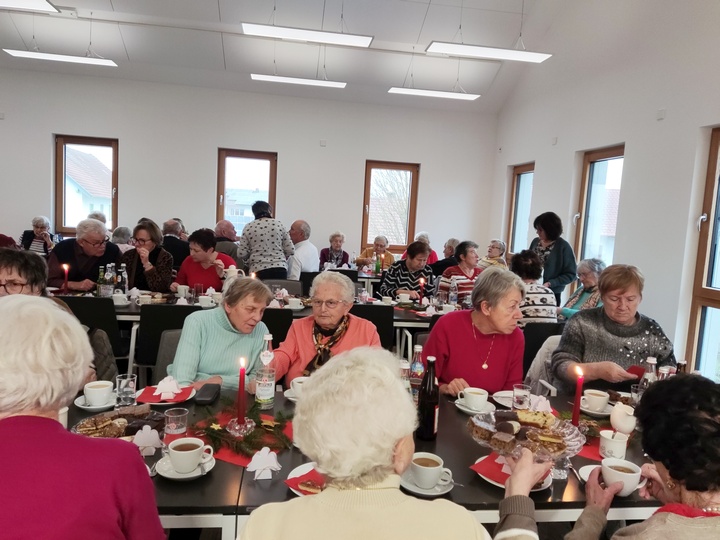 Der Seniorennachmittag Ü60 der Pfarrei Pinkofen-Unterlaichling stand am im Dezember ganz im Zeichen von Advent und dem bevorstehenden Weihnachtsfest. Die Damen des Leitungsteams hatten die Tische und den Raum im Pinkofener Dorfgemeinschaftshaus dem Anlass gebührend dekoriert und in der „Weihnachtsbäckerei“ für entsprechendes Gebäck für diesen Nachmittag gesorgt. |