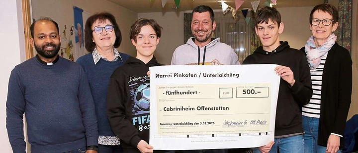 Eine Spende in Höhe von 500 Euro übergaben Pfarrer Justine Chakkiath und Vertreter des Pfarrgemeinderats der Pfarreien-Gemeinschaft Pinkofen Unterlaichling im Rahmen einer Pfarrgemeinderats-Sitzung an das Cabrini-Haus in Offenstetten. Das Geld stammt aus dem Erlös der Bewirtung nach der Waldweihnacht, die im Dezember auf der Napoleonshöhe gefeiert wurde. |