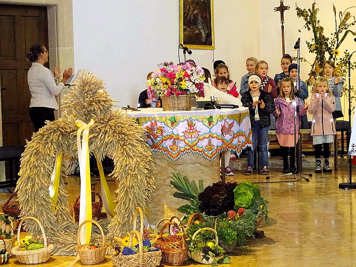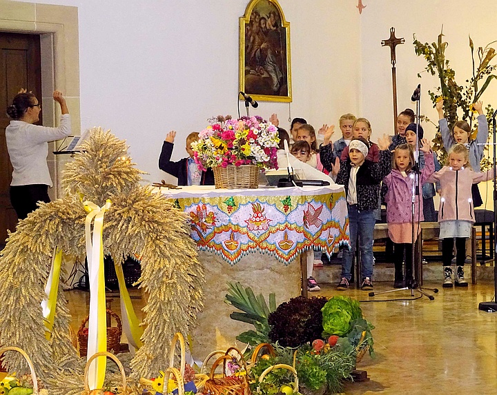 | Die fröhlichen Lieder des Kinderchors bereicherten das Erntedankfest. |