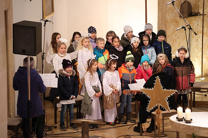 Auch der Kinderchor hatte sich intensiv auf seinen Auftritt vorbereitet, in den Wochen vor Weihnachten wurden Lieder ausgewählt und geübt. Die jungen Sängerinnen und Sänger wurden dabei von ihren Leiterinnen Elena Hofmeister und Veronika Hornung begleitet und unterstützt. |