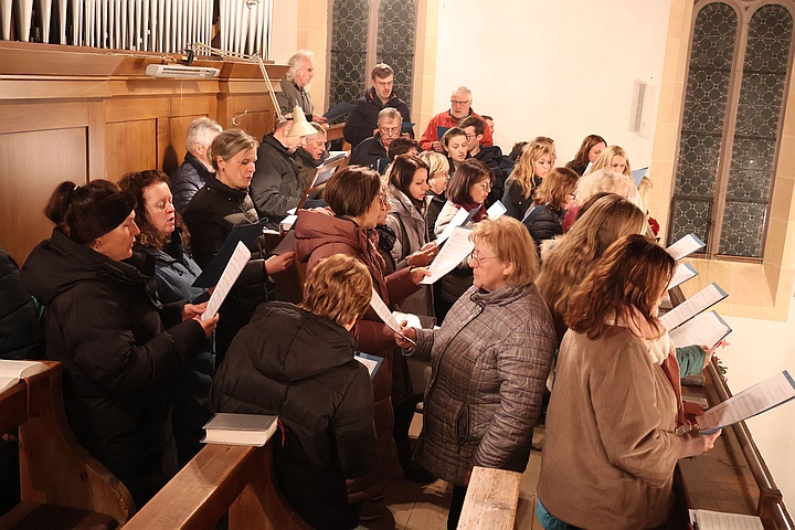 | Ein Projektchor unter der Leitung von Bernhard Brattinger und Marissa Schmidbauer als Solistin gestaltetet die Christmette mit. |