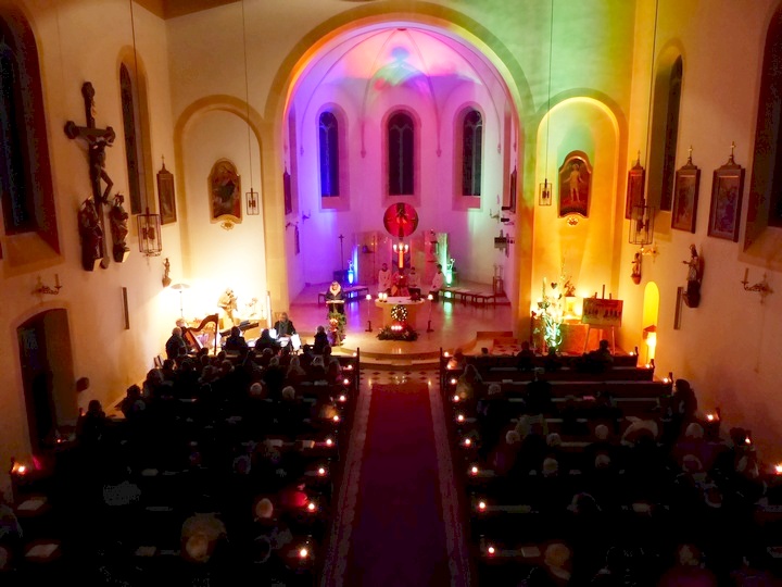 | Pfarrer Justine Chakkiath zelebrierte den Rorate-Gottesdienst, den die „Mallersdorfer Saitenspringer“ musikalisch umrahmten. |