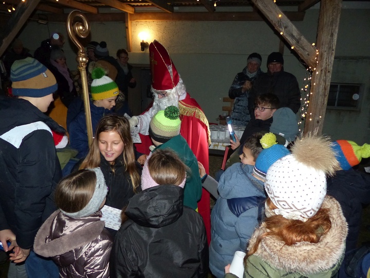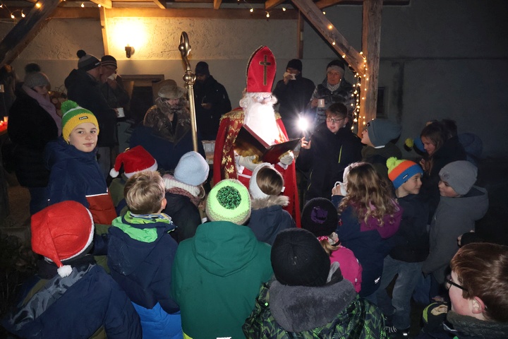 Für diese Feier hatte das Ministranten-Betreuerteam Knacker gegrillt und mit Semmeln und verschiedenen Beilagen zum Auswählen bereitgestellt. Außerdem gab es Kinderpunsch und heißen Aperol. Auch der Nikolaus (Jan Grau) kam mit seinem Knecht Ruprecht (Rafael Bauer) zu Besuch und verteilte Niklaus-Säckchen an die Ministranten. |