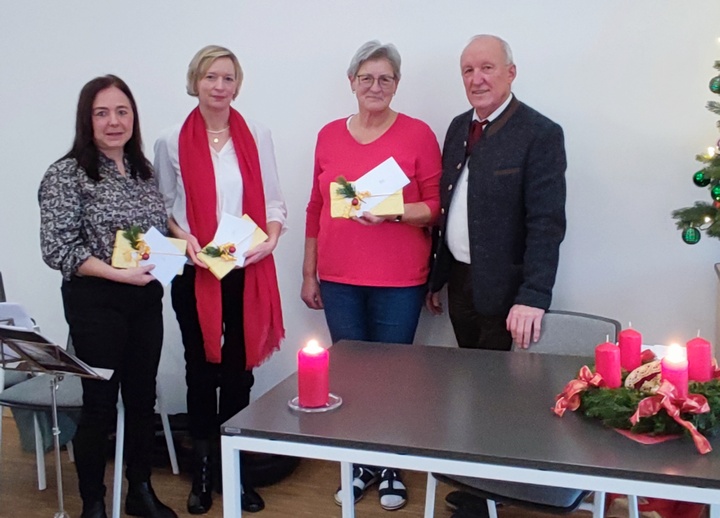Sprecherin Rosemarie Brattinger freute sich über einen guten Besuch, ihr besonderer Gruß galt den Gestaltern des Nachmittags, Rudi Schmid und dem „Laber-Duo Conni und Lisa“. Auch Pfarrer Justine Chakkiath und Bürgermeister Christian Kiendl statteten den Senioren einen Besuch ab. Sie wünschten den Anwesenden, die „staade Zeit“ bewusst wahrnehmen zu können. |